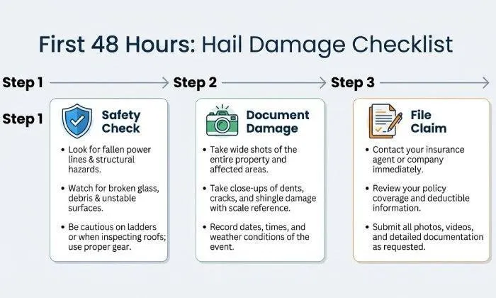 First 24–48 Hours After a Hailstorm: Safety, Documentation, and Temporary Protection
